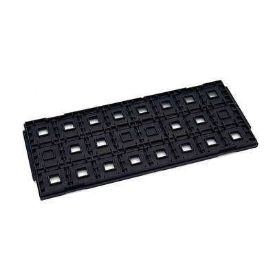 The High-Profile JEDEC matrix tray is specifically designed to meet the rigorous handling and protection needs of thicker (high) components, modules, and assemblies that exceed the clearance of standard low-profile trays. With a standardized thickness of 0.40 inches (10.16mm), this variant ensures adequate vertical clearance for components like PLCC (Plastic Leaded Chip Carrier), CERQUAD, high-density PGA (Pin Grid Arrays), and various finished modules. As with all JEDEC standards, the external outline remains a fixed 12.7 x 5.35 inches (322.6 x 136mm), preserving its universal compatibility with the vast global infrastructure of JEDEC automation equipment. Constructed for exceptional strength and dimensional stability, high-profile trays are crucial for securing components with features that are vulnerable to bending or impact, such as the numerous pins on a PGA device or the complex structure of a pre-assembled module. They are typically manufactured from robust, ESD-safe molding compounds to ensure both mechanical protection and electrical safety.